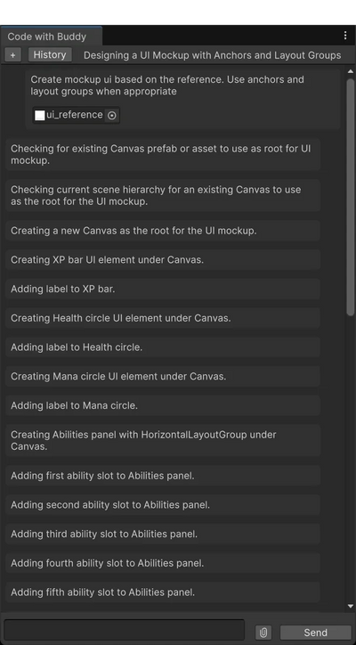 Code Buddy is a Unity editor extension designed to accelerate development by integrating a project-aware AI into your workflow. It analyzes your existing codebase to produce C# scripts and shaders that correctly use your classes and methods, reducing the need for manual refactoring. You can also use it to find specific code snippets or understand how different parts of your project are connected.